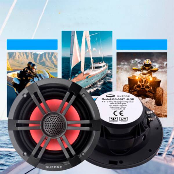 Водонепроницаемые динамики GS-068T-RGB с подсветкой от бренда Guzare обеспечивают качественное воспроизведение музыки и аудиозаписей во время водных перевозок. Динамики устанавливают на различных маломерных средствах – катерах, яхтах, других судах. Подходят для установки на сухопутный транспорт – квадроциклы, автомобили, снегоходы и др.