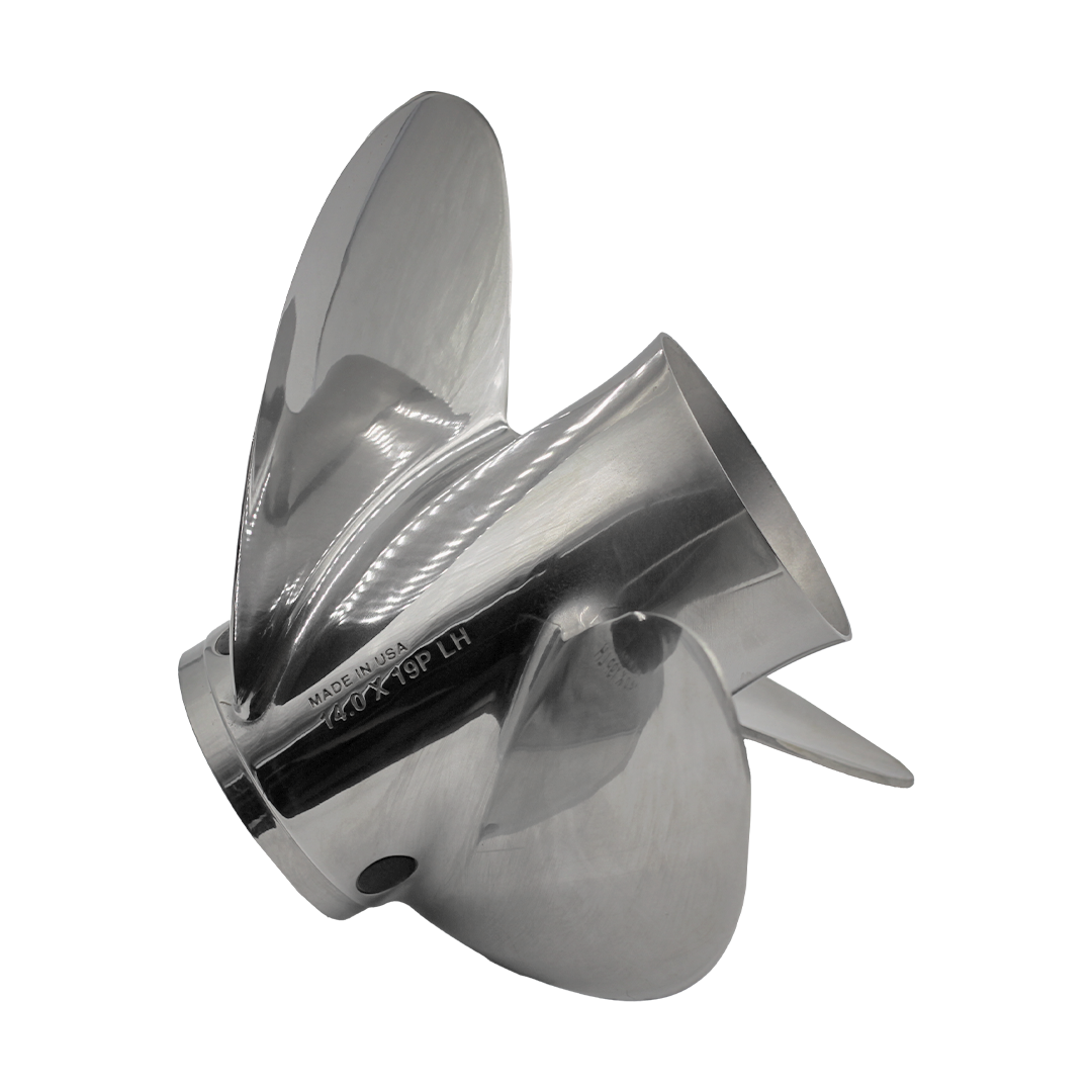 Оптимальный диаметр 14 дюймов для широкого спектра судов, обеспечивающий хорошее соотношение между тягой и скоростью.