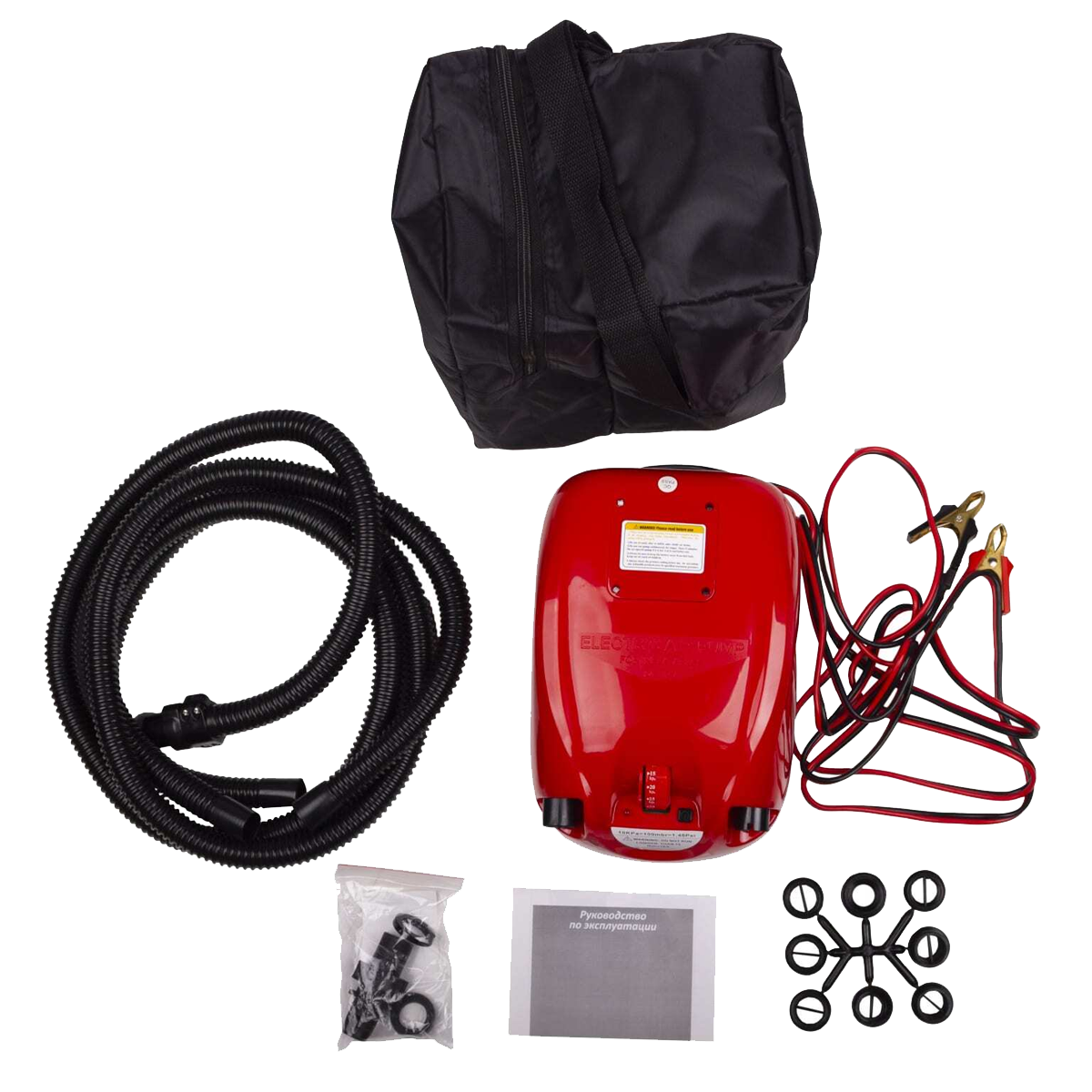 Компактные габариты (220х210х275 мм) и специальная сумка-чехол облегчают перенос насоса с места на место и хранение всех комплектующих. Комплектация изделия состоит из шланга, кабеля и переходника.