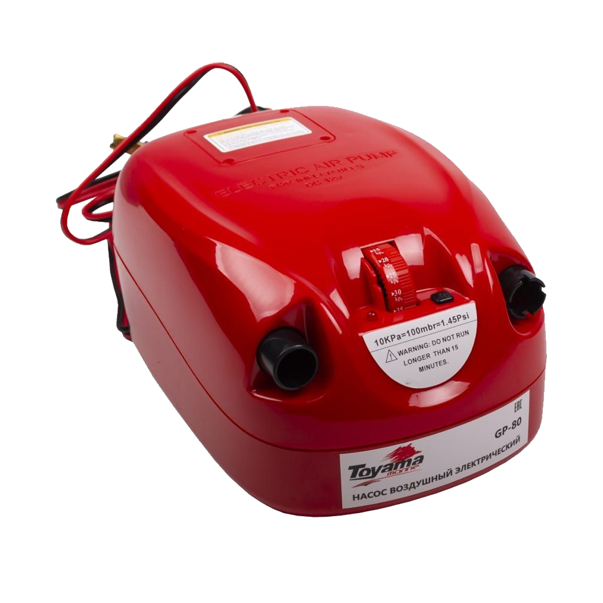 Toyama GP-80 – двухступенчатый электрический воздушный насос высокого давления. Предназначен для накачивания резиновых лодок и других надувных изделий, а также для откачивания воздуха из них. При соблюдении правил эксплуатации может использоваться для шин, матрасов и бассейнов.