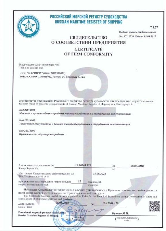 • Сертификаты ГОСТ ISO "Маринэк" 5